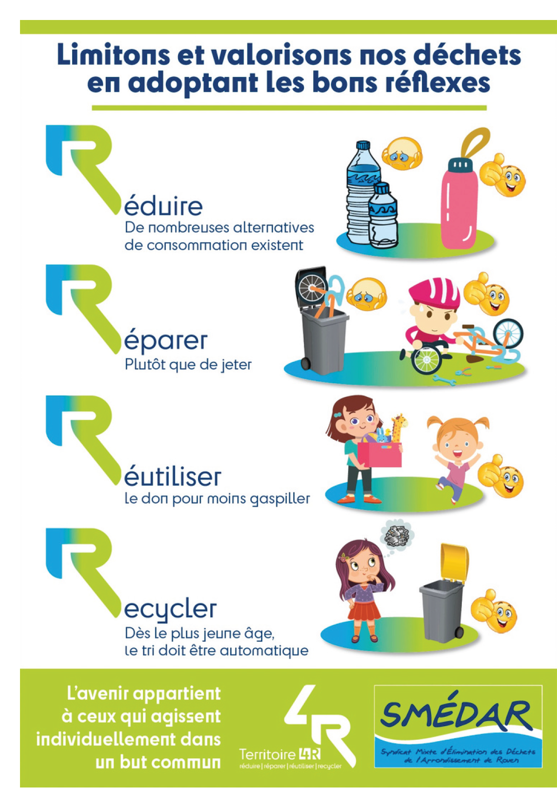 Sur notre espace, les parents découvriront de manière ludique les 4 R : réduire en choisissant des produits moins emballés, réparer plutôt que jeter, réutiliser grâce au don et au réemploi, et enfin recycler en triant correctement les emballages et papiers du quotidien. Des animations et supports pédagogiques illustreront ces gestes simples, pensés pour être facilement reproductibles à la maison avec les enfants.